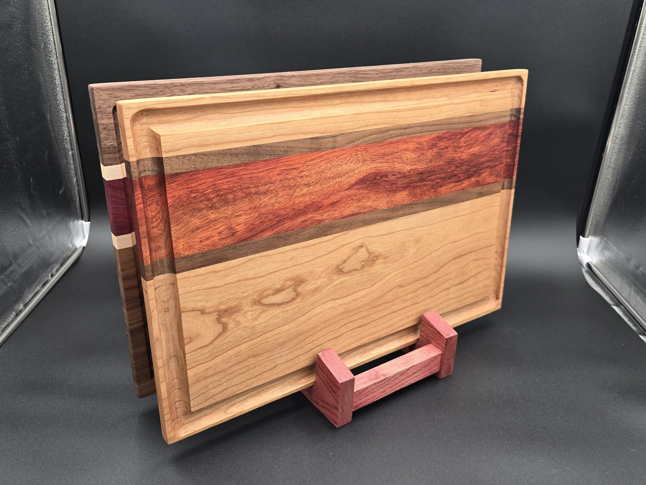 Available in a wide variety of sizes, thicknesses, and wood species—walnut, maple, cherry, purpleheart, padauk, zebrawood, and more. Many options including hand holds, feet, juice grooves, beveled edges, and other custom features.